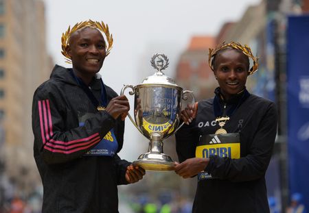 (Reuters) -Evans Chebet retained his Boston Marathon title and fellow Kenyan Hellen Obiri won the women’s race on Monday but their compatriot and twice Olympic champion Eliud Kipchoge failed to make the podium.