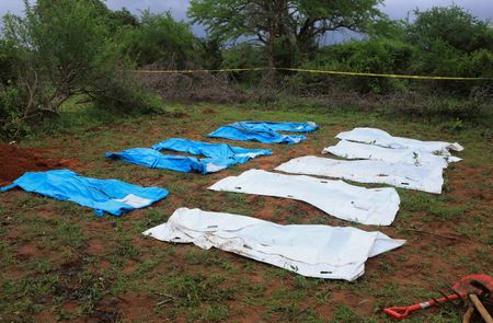 NAIROBI (Reuters) -Kenyan police have recovered 73 bodies, mostly from mass graves in a forest in eastern Kenya, thought to be followers of a Christian cult who believed they would go to heaven if they starved themselves, a police officer said on Monday.